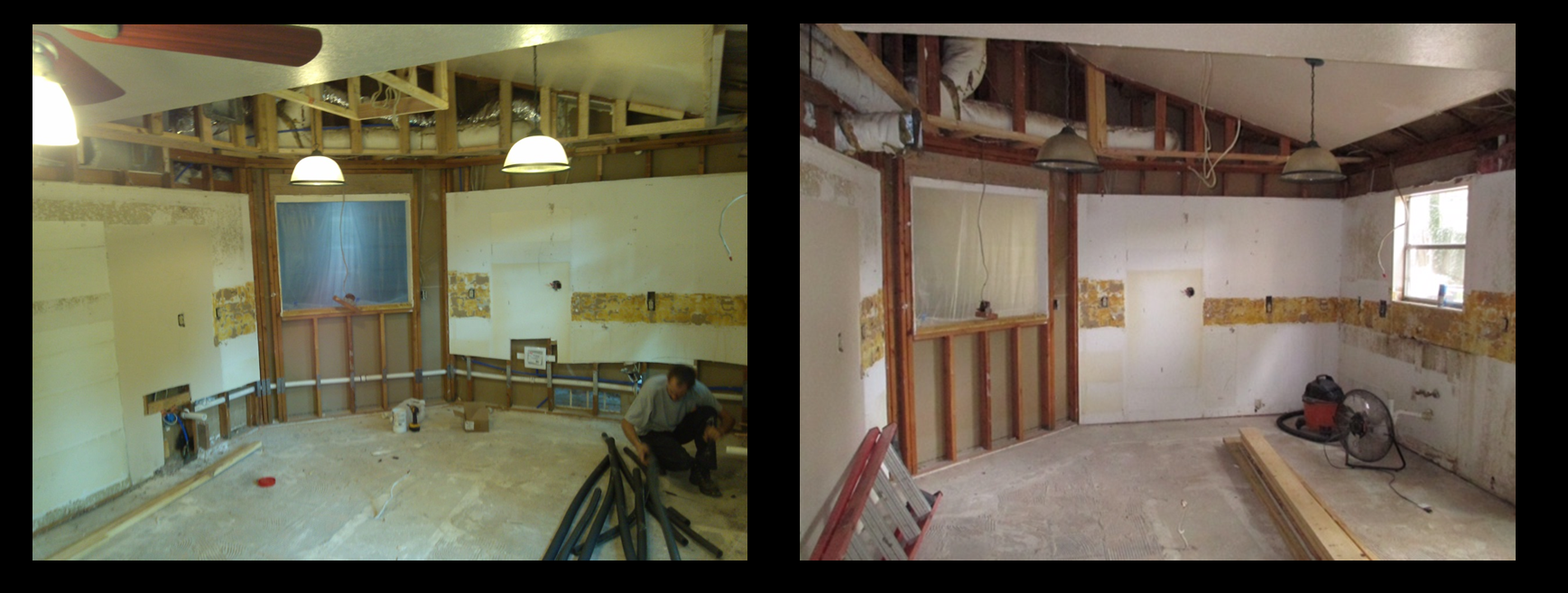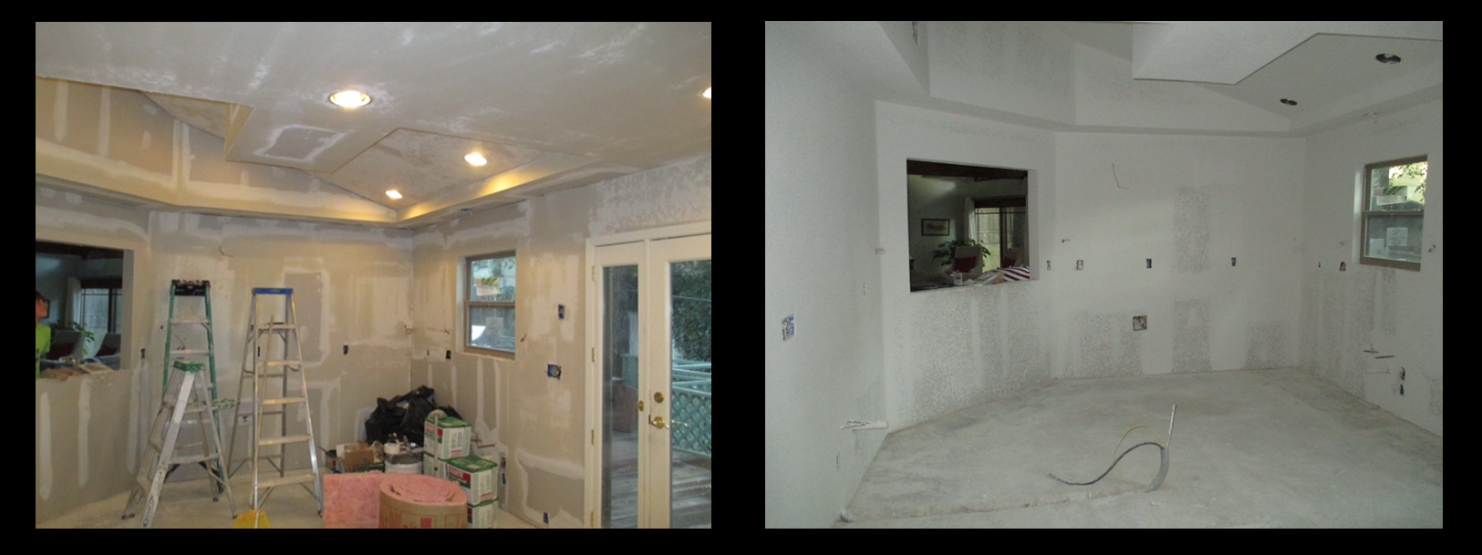 After the old kitchen was gone and the demo was complete, the left over framework got a brand new foundation with a fresh layer of drywall. The space looked infinitely larger, brighter, and well on the road to completion!