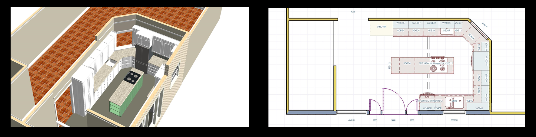 To solve this problem, our designers created a new layout by implementing a new floor plan and 3D renderings, emphasizing the functional detail of the new kitchen.