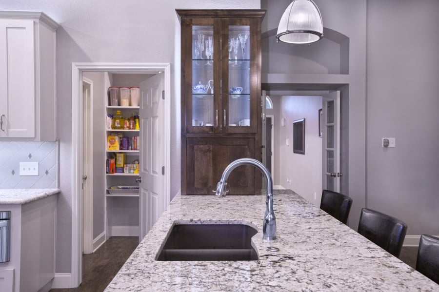 Lastly, the existing walk-in pantry was placed at an angle in the corner of the kitchen. This broke up valuable counter top space and vertical space that could be utilized for cabinetry.