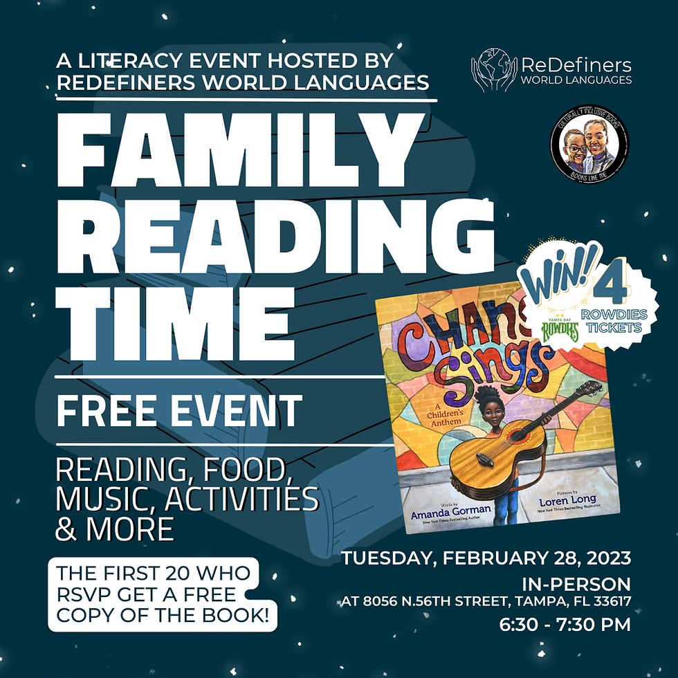 We hope that you can join us for this literacy event on Tuesday, February 28th at the ReDefiners World Languages building in Tampa, Florida.