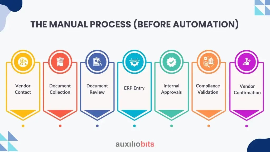 This entire process, though functional, was painfully slow. Onboarding one vendor took between 30 and 45 days and involved more than 50 emails, six different people, and sometimes three printed files per vendor. Human error was standard — mistyped GST numbers, expired certifications, or missing attachments often delayed approvals.