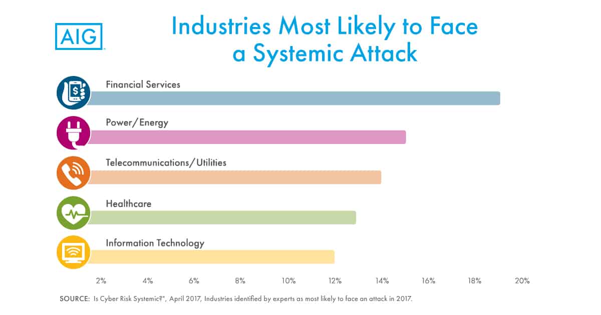 The Ponemon Institute found the average number of breaches for financial firms has more than tripled from 40 back in 2012 to 125 reported incidents in 2017, and insurer AIG identified the financial sector as being at highest risk for a systemic cyber attack.