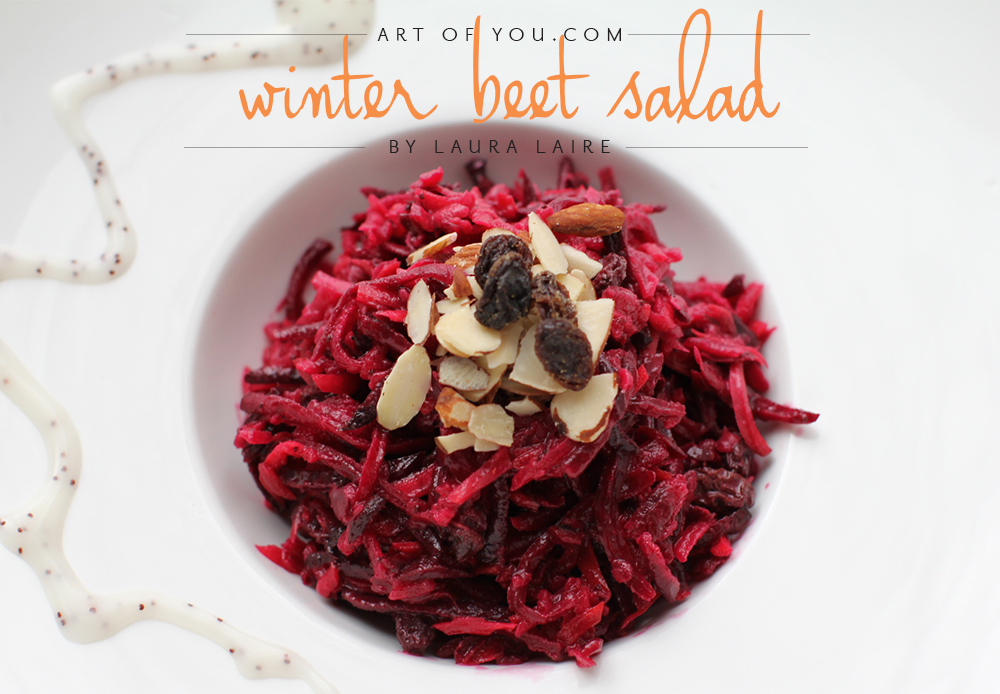 So now I’m detoxing, working out for at least 30 minutes, 5 days a week and trying to eat as much RAW food, as possible. I almost always have a salad for lunch, and always try to have steamed or raw food with dinner as well. I feel better when I do, my skin looks better, and my jeans fit me better! Life and eating are all about balance. After the holidays, along with some squats, is one of my favorite salads, raw beet salad. To make sure my children like it too, I like to add jicama and carrots, as well as a tangy sweet dressing. This salad is so easy to make with a food processor and is a great side dish for lunch or a gourmet dinner party, with a gorgeous magenta color and crunch that would even be fabulous on a burger or tacos.