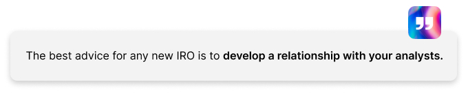Hayley: In Q4, we want to help companies succeed and show their value. But a significant need for our clients is also to succeed in their careers as individuals. What would you say to any IROs feeling pressure to show their team that they’re doing their due diligence and doing everything they can to ensure the success of their IR program?