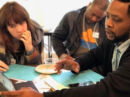 To get at the heart of the standards themselves, I aimed to facilitate tasks that focused on the action verb written into the standard (i.e. quote, explain, analyze, describe). In leveled reading groups of 3-4 participants per group, students read full-length novels aloud sitting knee-to-knee, discussed their individually written reflections, grappled with text-based and critical-thinking questions, co-published a group response poster and conferred with another group reading the same novel.  Whew!  It was an arduous process.