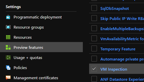 To use VM Inspector you need to connect to the preview Azure portal (https://preview.portal.azure.com/) and register the provider VM Inspection by accessing your subscription Preview feature blade