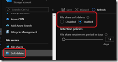 Once you protect your Azure File Share, Azure Backup automatically enables the soft delete feature on the protected Storage Account with a retention period of 14 days.