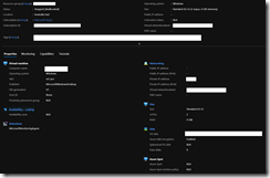 - Properties: gives you some details about the virtual machine; installed extensions, availability and scaling, VM generation…