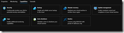 - Capabilities: what you can enable/configure for the VM, like backup, disaster recovery or update management