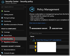 To enable this policy, go to your Security Center and reach the Security Policy blade under the Policy & Compliance section