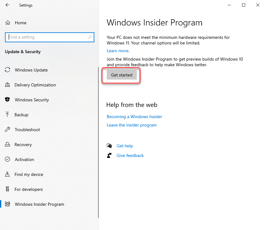 NOTE: If you get the message that “Your PC does not meet the minimum hardware requirements for Windows 11. Your channel options will be limited.”, all you have to do is reboot your device to ensure the latest update is applied. This is known by the Microsoft Windows Insider Team and they will fix it soon: Preparing for Insider Preview Builds of Windows 11 – – Microsoft Community.