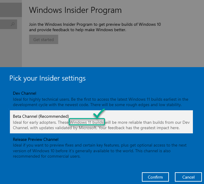 - The below chart (courtesy of https://blogs.windows.com/windows-insider/2021/06/24/preparing-for-insider-preview-builds-of-windows-11/) explains why our attempt of getting Windows 11 resulted in getting the Beta or the Dev Channel release and not the Release Preview Channel: By installing Windows 10 in a virtual machine, the Windows 11 Hardware Requirements were not met but it met the minimum requirements for the Windows insider program (Orange column). Hence the Release Preview Channel is “N/A for windows 11 Insider Preview Builds”