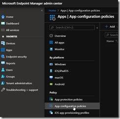 Depending of the application policy type – Managed devices or Managed apps – the configuration options are a little bit different; the easiest one is the Managed Apps