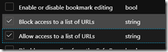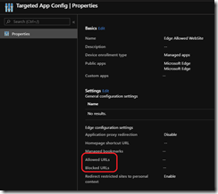 If you use the Managed devices policy type, the options to manage allowed/blocked URL’s are available in the Settings blade by adding the following configuration keys: