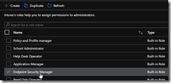 A new administration role for Intune has been made available – Endpoint Security Manager.