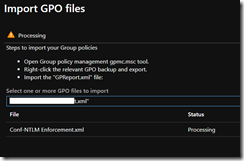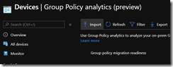 Then connect to your Endpoint Configuration Manager portal (https://endpoint.microsoft.com/) and access the DevicesGroup Policy Analytics blade to import the XML file generated above
