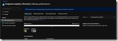 - Start up performance: Get end-users from power-on to productivity quickly by identifying and eliminating lengthy boot and sign in delays. Leverage the startup performance score and a benchmark to quickly see how you compare to other organizations, along with recommended actions to improve startup times.
