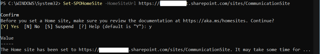 To do this, you need to use SharePoint Online PowerShell and the following commands to connect to your tenant and set the home site