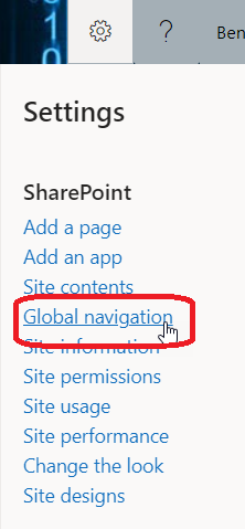 - If you want global navigation to be different from the home site navigation, select Hub or global navigation (even if your home site is not a hub)
