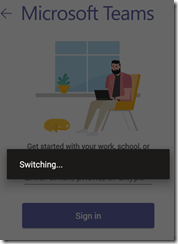 So, when you have your Teams mobile application installed on your device, first you need to sign in with your corporate account and then add an account using the Add account option