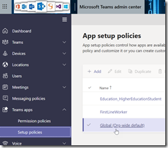 For administrators to define/update policy, logon to your Teams administration portal (https://admin.teams.microsoft.com/) and go to Teams appsSetup Policies, then either edit an existing policy or create a new one