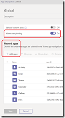 Microsoft Teams now allow administrator to define policies to pin apps to their end-users (turned on by default).
