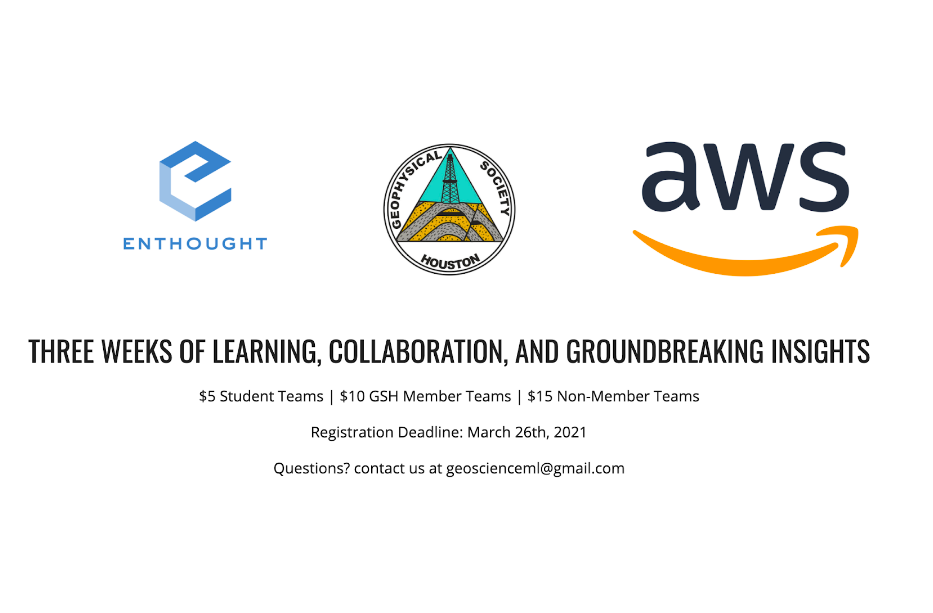The 2021 Houston GSH Geophysics on Cloud Competition is sponsored by AWS Energy and Enthought. This competition will allow teams and individuals to develop new and innovative solutions for seismic inversion. We’re going all in on cloud. You will be provided the latest technologies for serverless access to big data, examples of AWS SageMaker to learn how to build ML models on the cloud and a gather.town, where we can work and collaborate in 8-bit.