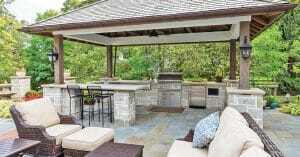A luxury outdoor kitchen seamlessly extends the heart of your home to the great outdoors. With a carefully planned design that complements your home’s architecture, you’ll have a beautiful and functional space that enhances your outdoor living experience. Your outdoor kitchen becomes the focal point of gatherings, providing a warm and inviting atmosphere that keeps guests lingering long after the last bite.
