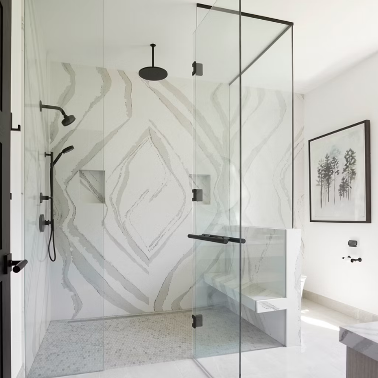 On trend bathroom tiles are oversized, uniquely shaped, mix and matched, textured, and even on floor to ceiling walls. You’ll also see tile accents in niches like the shower. Homeowners are thinking outside the subway tile box and considering all sorts of shapes and sizes. This is a great way to show some personality and have fun with one of the design elements in your room. For tile inspiration, click HERE.