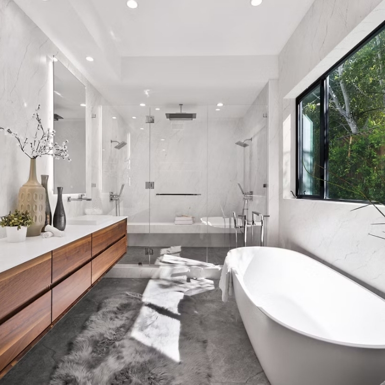 Creating a bathroom that merges luxury, functionality, and style is key for 2025. Trends like stained wood vanities and mixed metals bring warmth and a personal touch. Accessible design features ensure that the bathroom is comfortable for everyone, while task lighting adds both practicality and elegance.