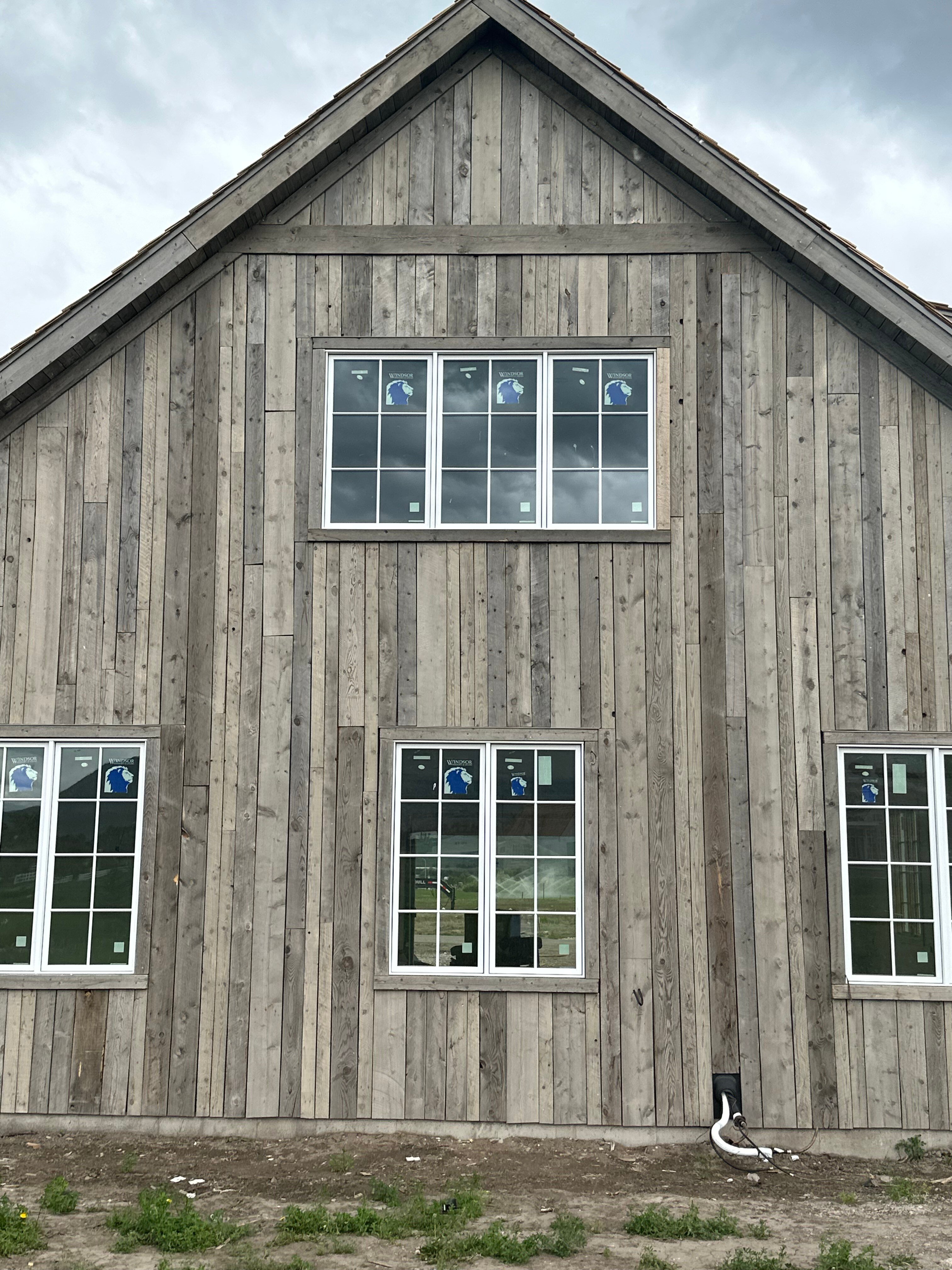 The house's exterior is adorned with a dignified stone facade, meticulously crafted to echo the colonial era's elegance. The add a touch of natural beauty and rugged texture. Modern windows with black trim allow ample natural light while preserving the house's historical aesthetic.
