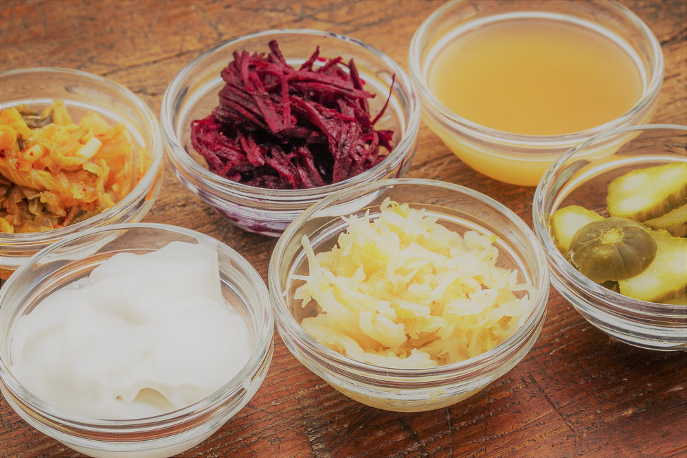 Modern diets high in refined sugars and flours, combined with higher levels of stress and poor sleep hygiene can contribute to dysbiosis by feeding the bad bacteria, enabling them to flourish. Eliminating those foods with refined sugar and flour and adding probiotic-rich fermented foods can help bring the gut back into balance. Fermented foods have beneficial effects on digestion, absorption of nutrients, and the immune system (75% of our immune system is in the gut!). Fermented foods are rich in probiotic bacteria, so by consuming fermented foods you are adding good beneficial bacteria and enzymes to your overall intestinal flora, increasing the health of your gut microbiome and digestive system, and again, enhancing the immune system.