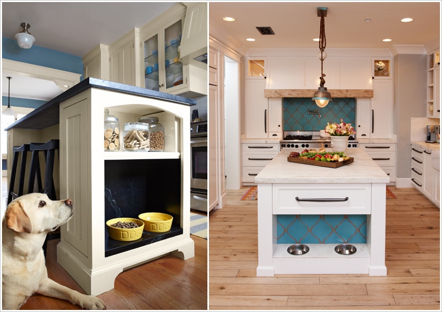 7. Built-in Feeding Station for Pets: A built-in feeding station keeps things tidy and prevents pet food and water from ending up on the floor. Including drawers above the space is great for organizing treats, medication, leashes and toys.