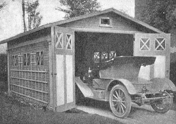 The garages were nearly always detached from the rest of the home, for risk of gasoline explosion (gas was stored in the garage, as gas stations were yet to be invented). By the 1920’s, most of these detached garages were built of brick, concrete blocks, clay tiles, or pressed tin, rather than wood. It wasn’t until closer to 1950 that detatched garages were built to match the same style as the home, and attached garages became more and more popular.