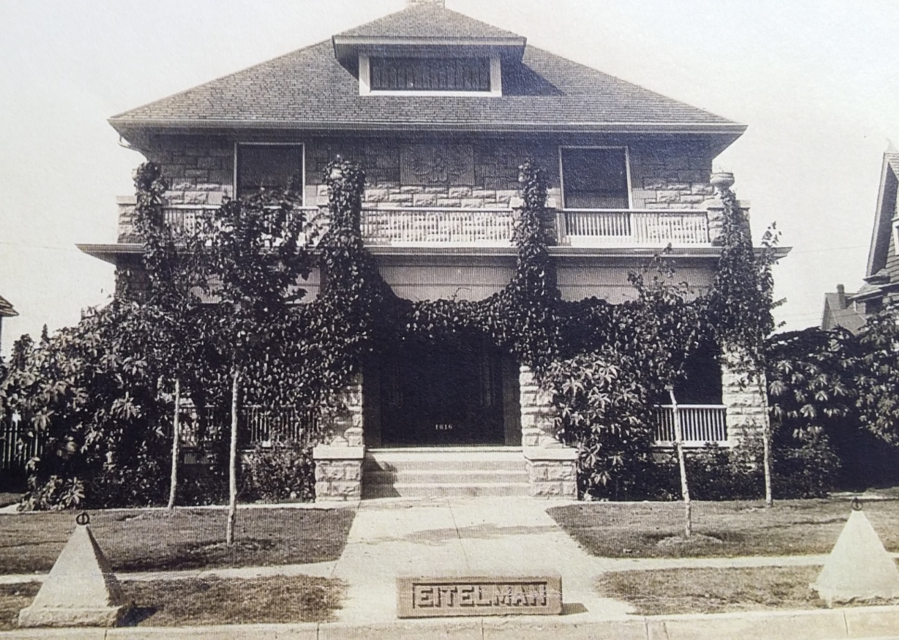 While doing research for permitting on a client’s historic home in Fairmont, we ran across this picture taken of it in the very early 1900’s. This was during the horse drawn carriage era, before modern automobiles. The concrete block with the owner’s last name on it is a step to step on while getting out of the carriage, and the two pyramid-shaped stones with the hoops on top are to tie the horses off.