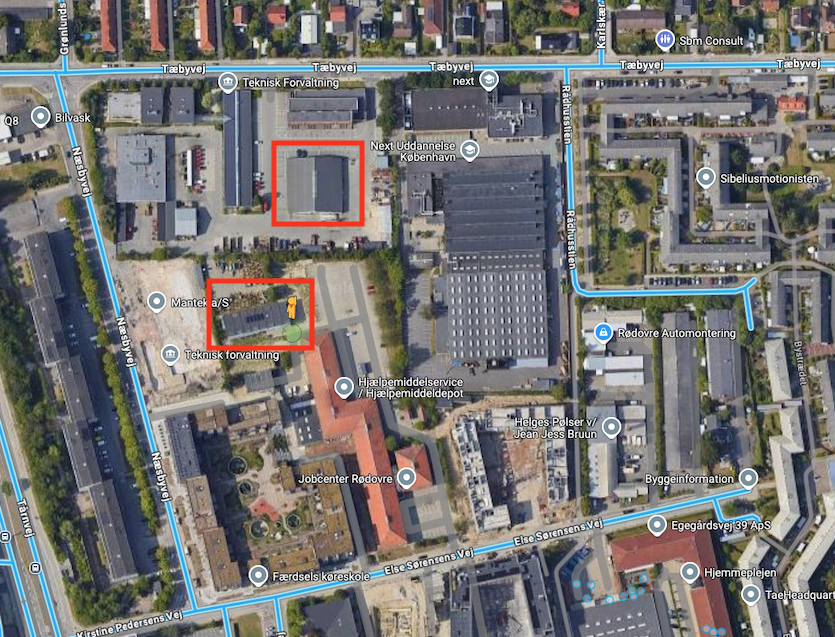Sidst men ikke mindst, er der bygninger som der slet ikke findes Street View for. Muligheden for at lave tilstandsvurderinger på disse bygninger er derfor meget begrænsede. Bygningerne i de røde firkanter på billedet nedenfor, er eksempler derpå.