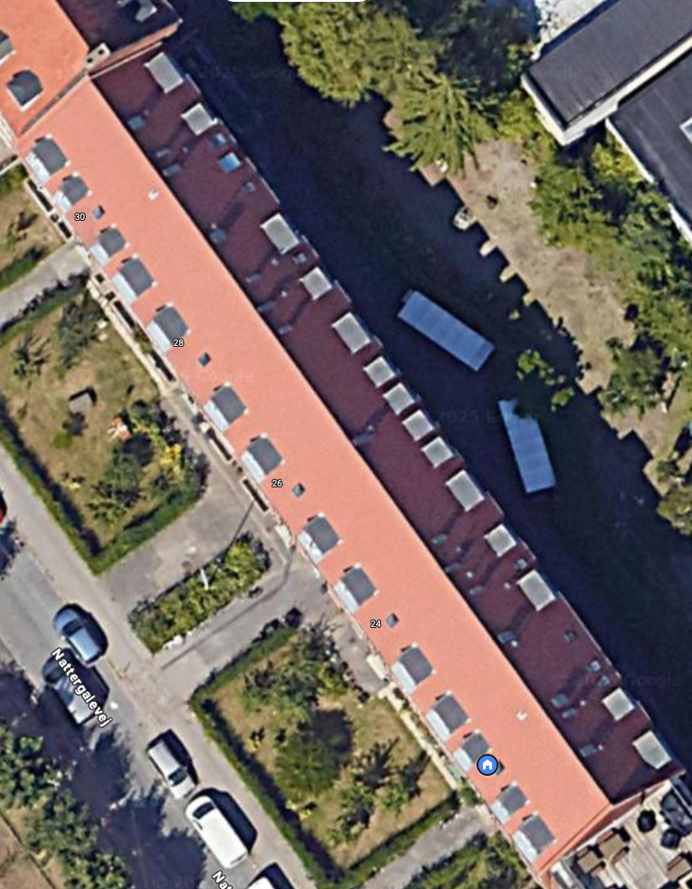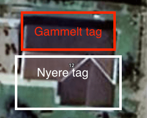 Udover at billedkvaliteten på billederne nedenfor er for dårlig til at kunne sige noget om tagets tilstand, kan det også være svært at se, om en tagside er i skyggen, eller om dele af taget er installeret på forskellige tidspunkter.