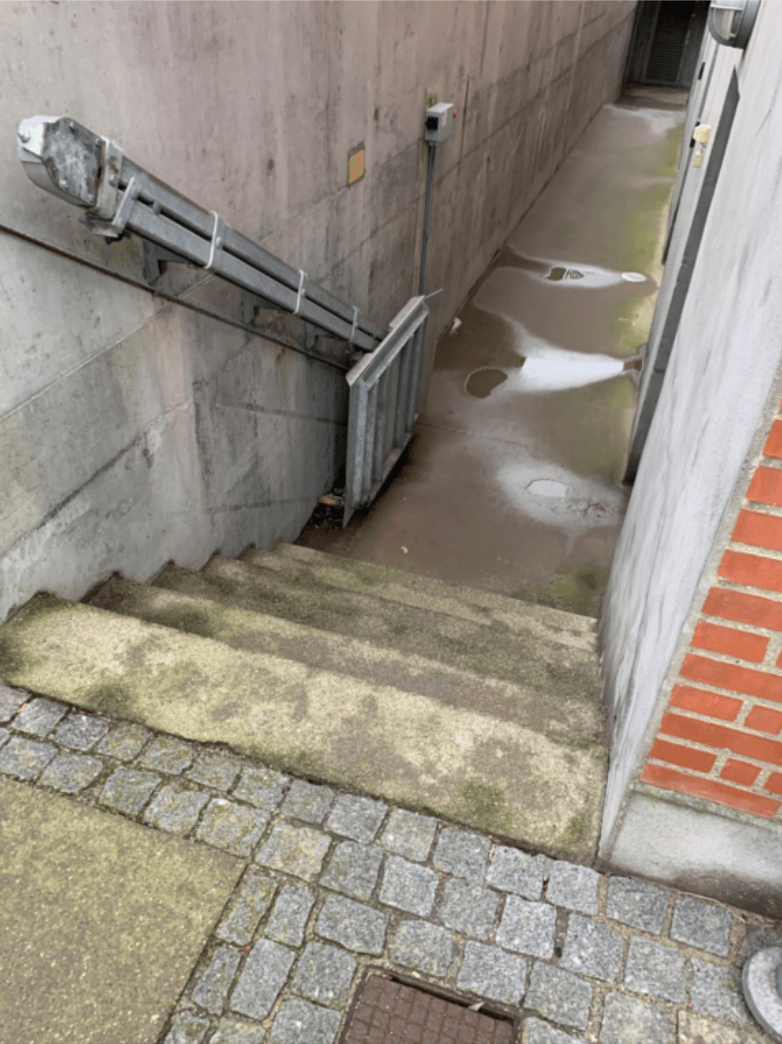 Som eksempel kan en chatbot, med lidt kløgtig prompt engineering, sige, at denne udendørs trappe er lavet af beton og estimere, at den har en restlevetid på 33 år med en tilhørende tilstand på 3 ud af 5 (1=ny, 5=defekt). Dermed ikke sagt, at denne vurdering er perfekt, men udgangspunktet for at tilstandsvurdere er markant bedre, end det vi kan få fra Google.