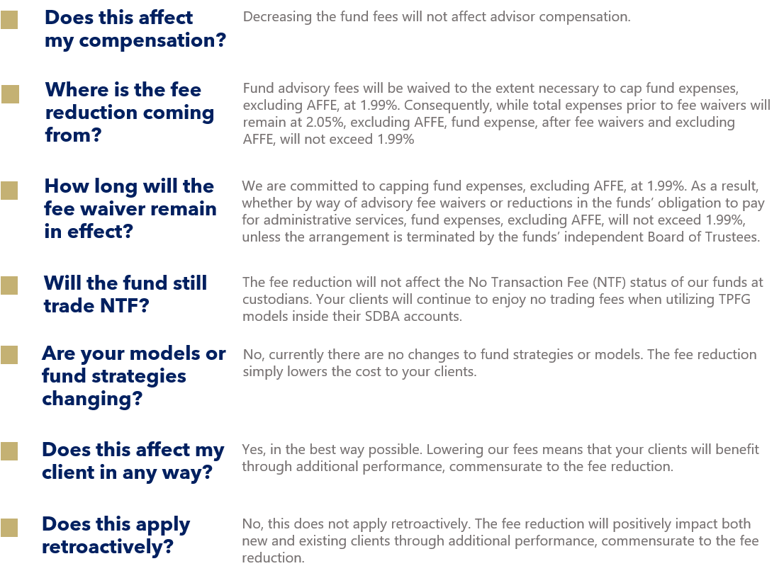 2023 begins with exciting news from TPFG. In response to hundreds of advisors asking for greater access to our industry recognized Strategy PLUS Model Portfolio Marketplace for retirement plan participants, we've lowered our fees. What you need to know: