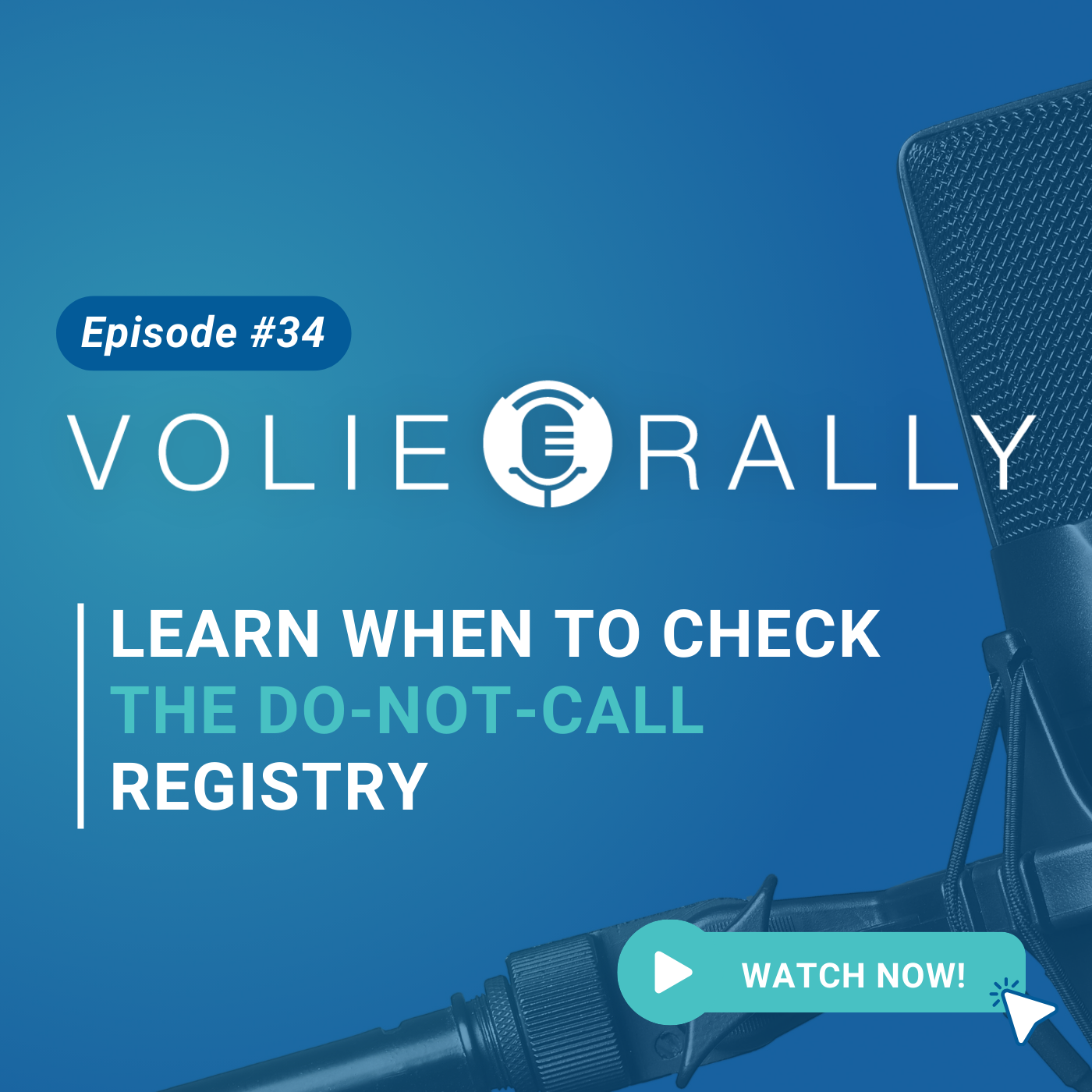Welcome to Episode #34 of the Volie Rally, where Jake and Scott continue their educational discussion on the Federal Do Not Call Registry. Learn about the importance of checking the DNC before you call your customers, and remember that the Federal DNC governs calls and SMS messages similarly. As always, we are happy to help if you have any questions.